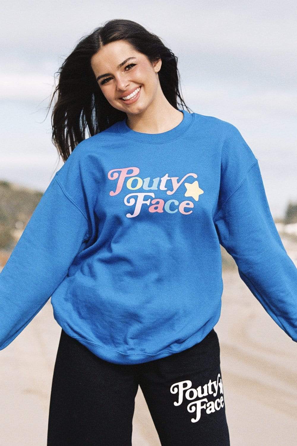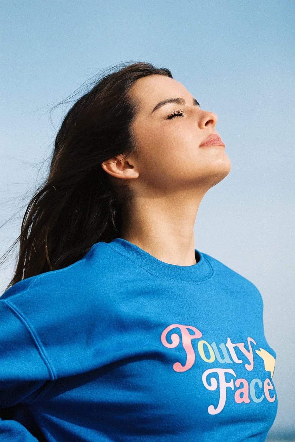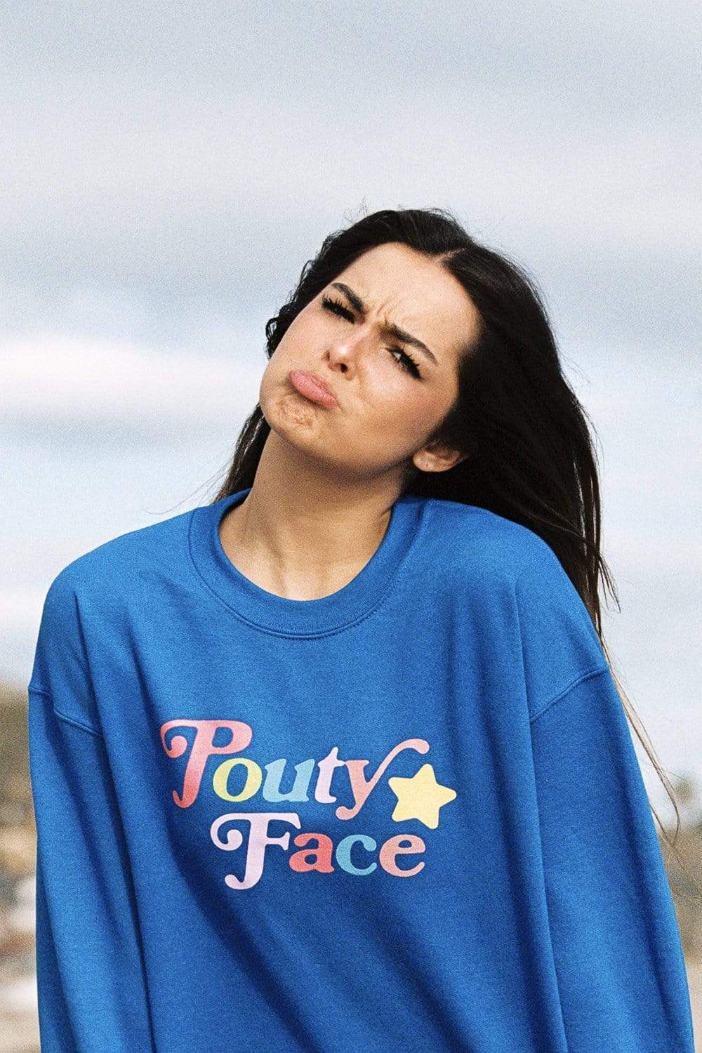 Addison Rae: Pouty Face Rainbow Blue Crewneck