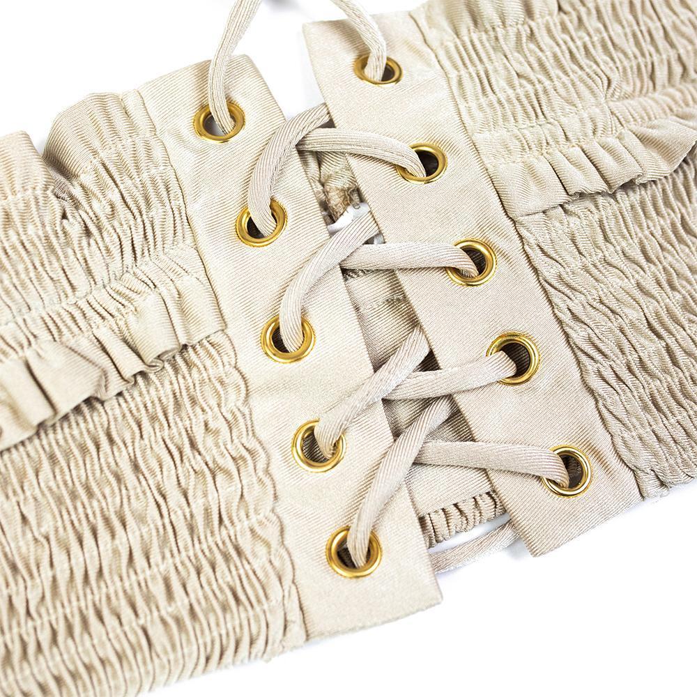 • Gold Grommets With Laced Strings At Chest